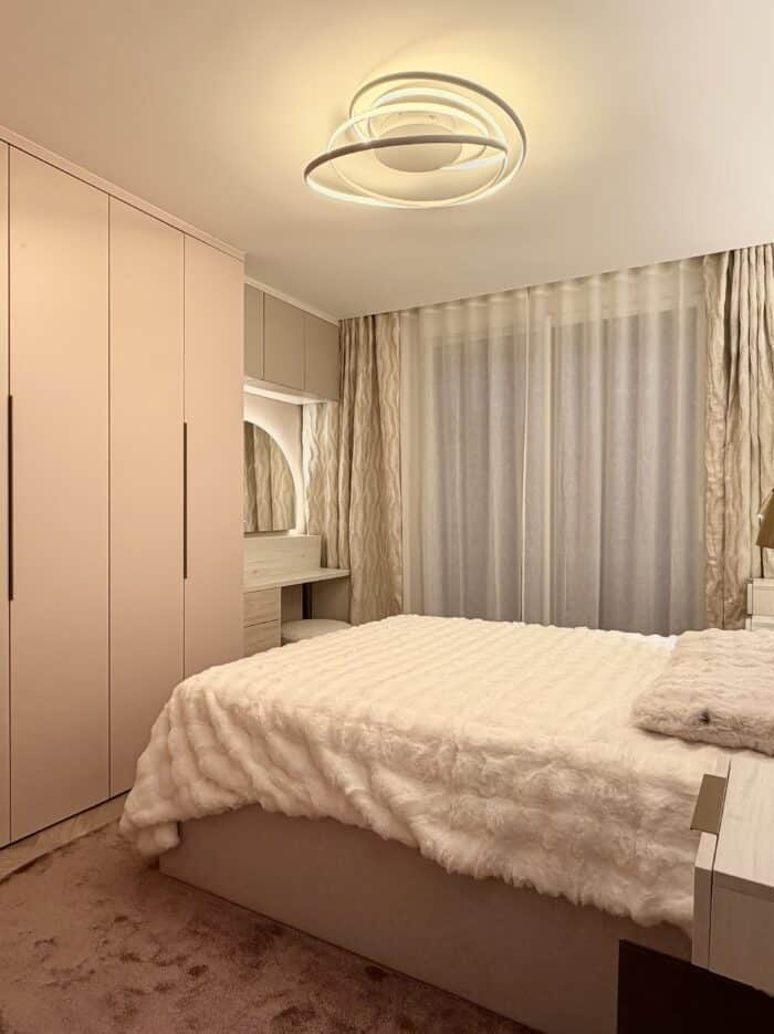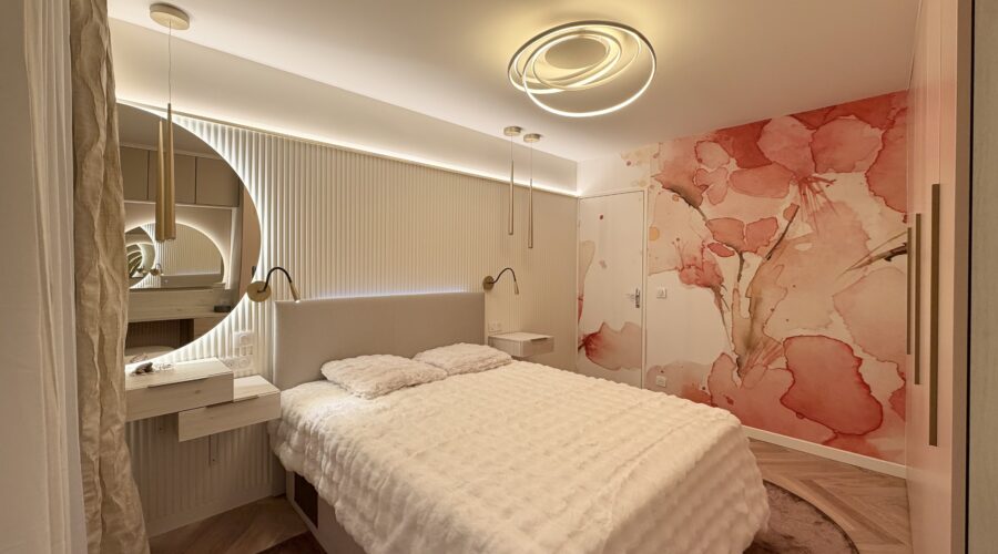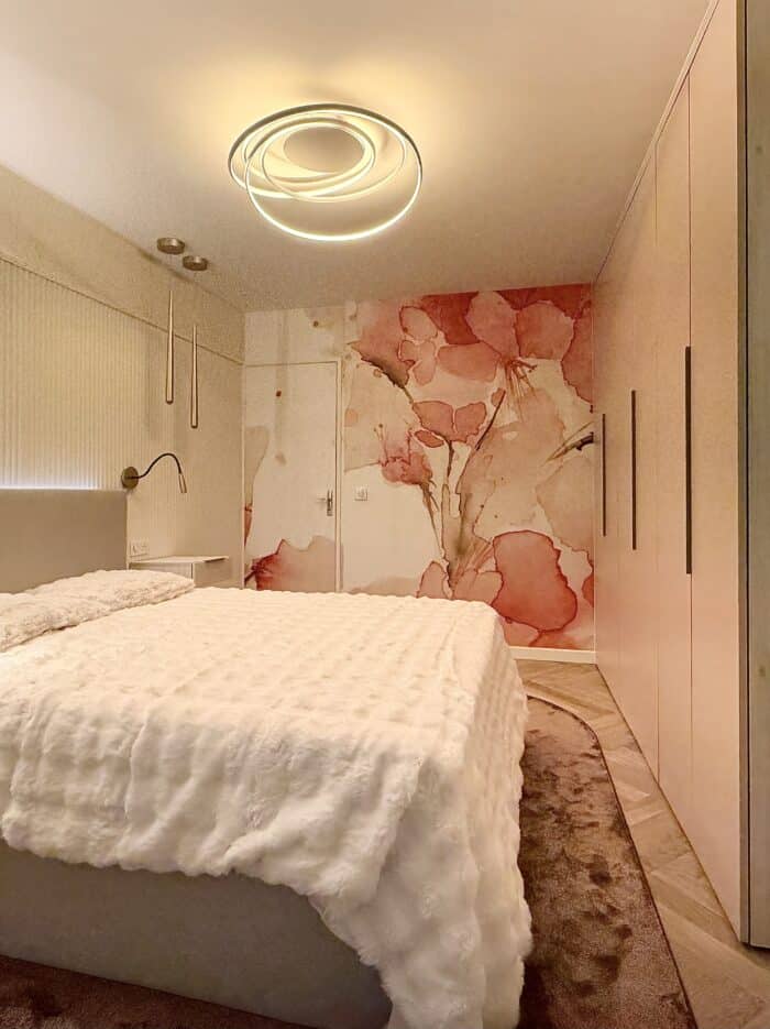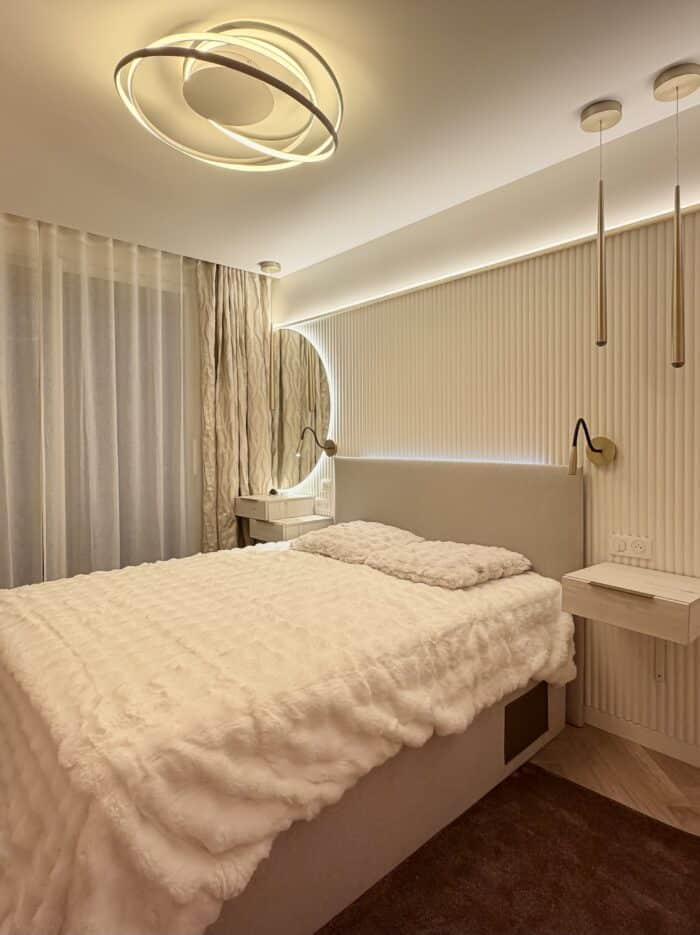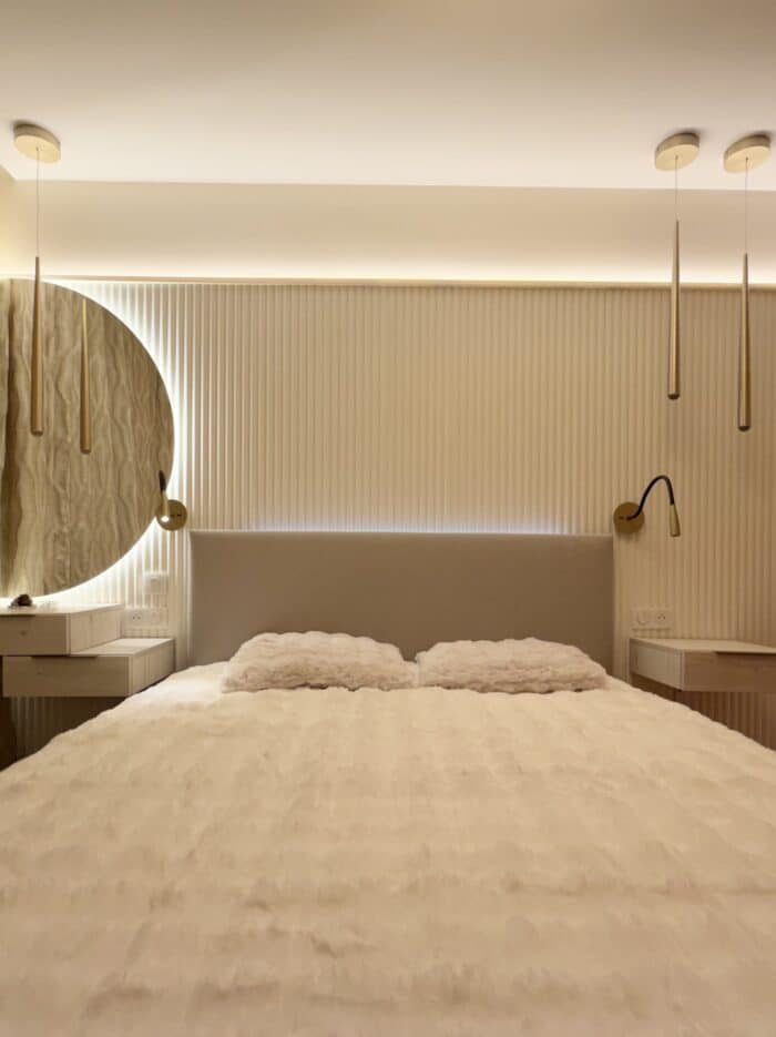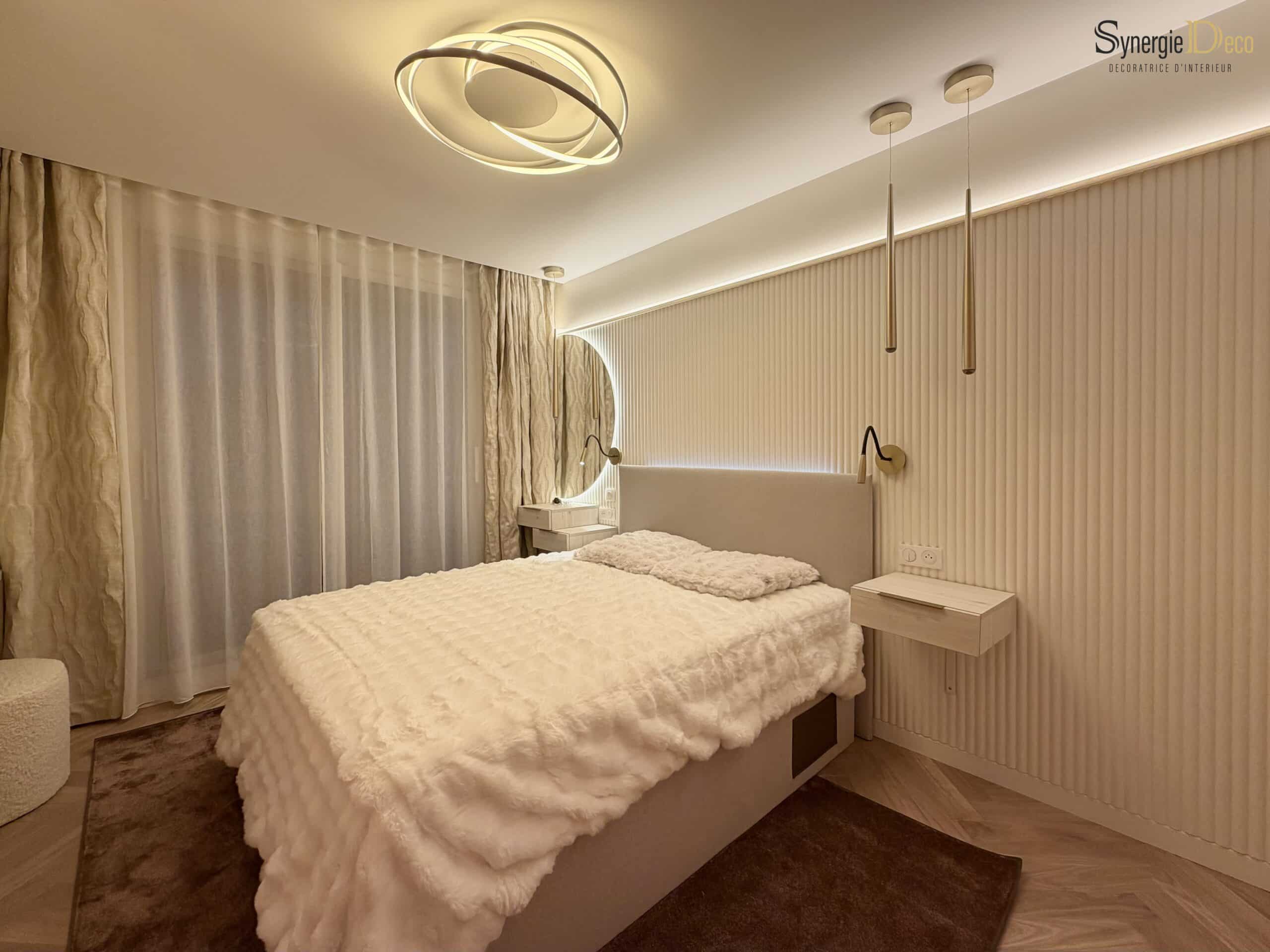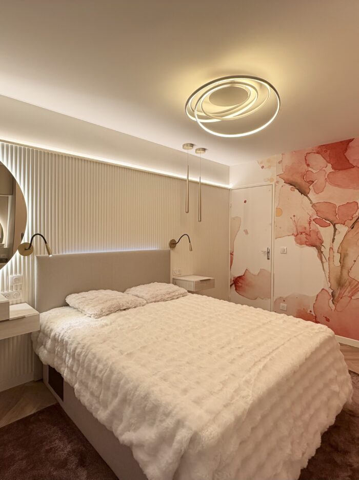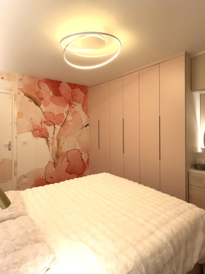 Résultat: après un mois de travaux, une chambre parentale lumineuse avec plusieurs scénarii d’éclairage possibles!