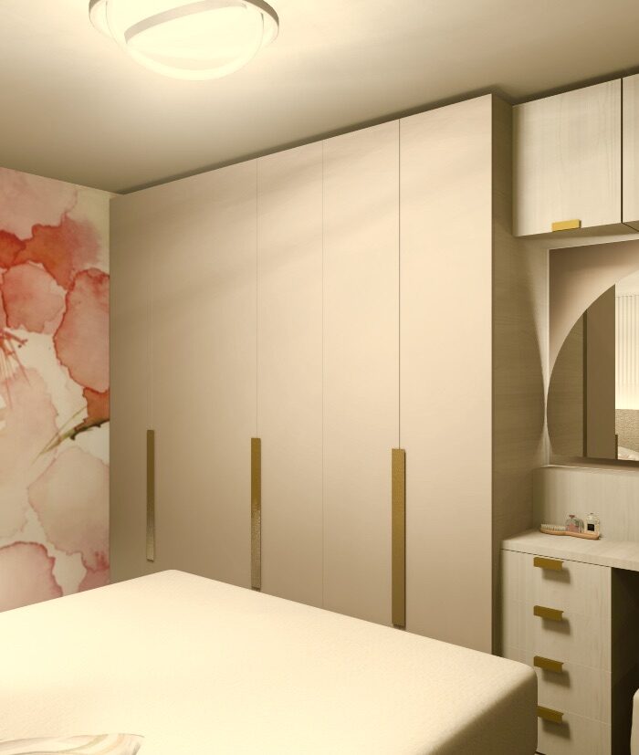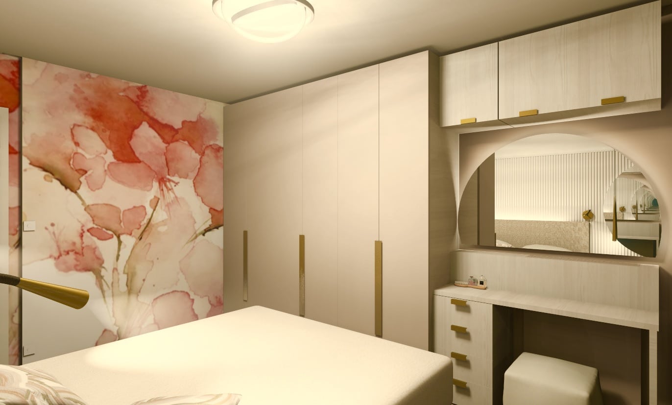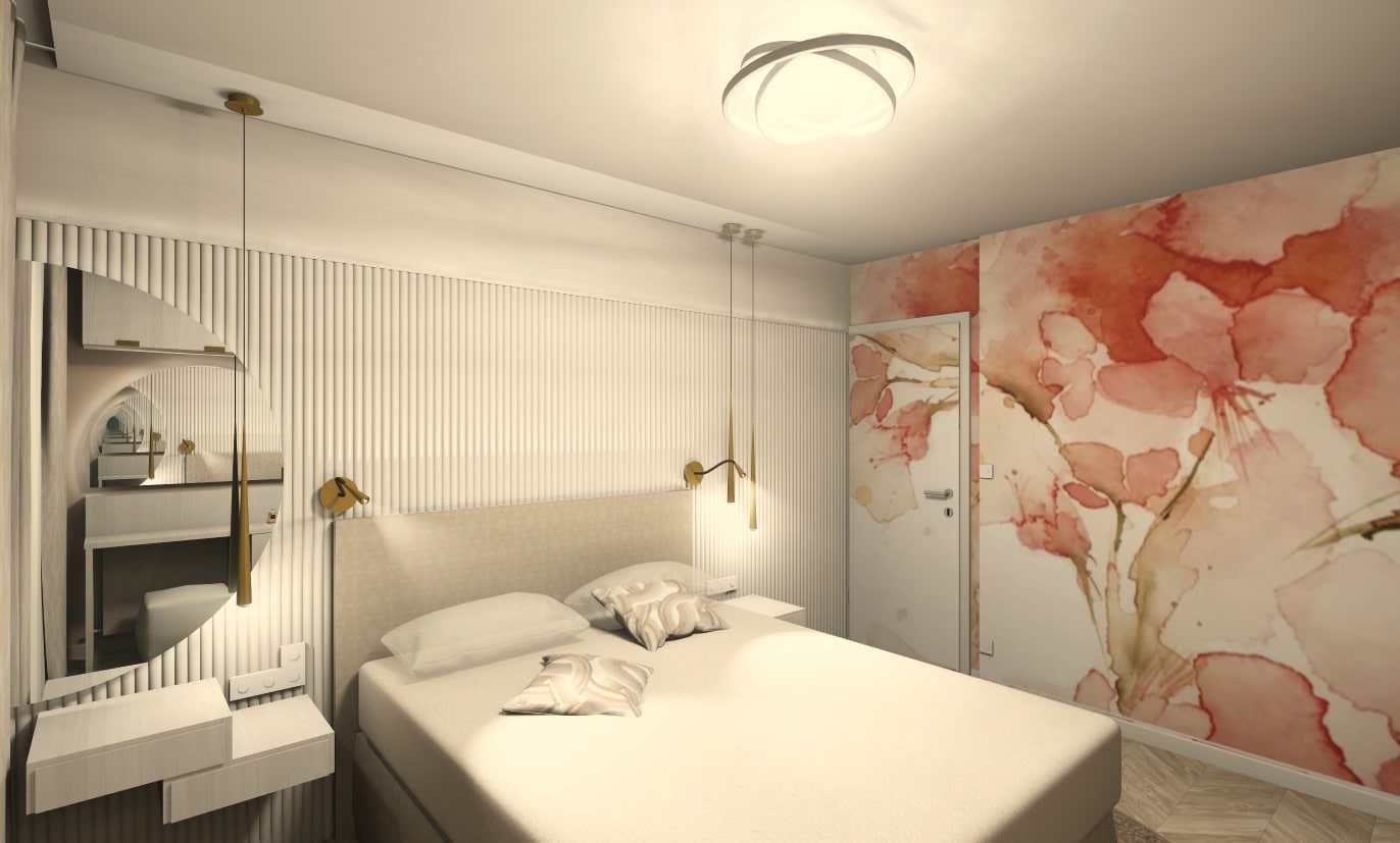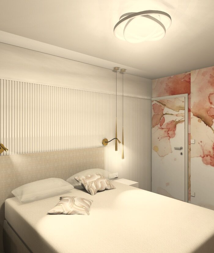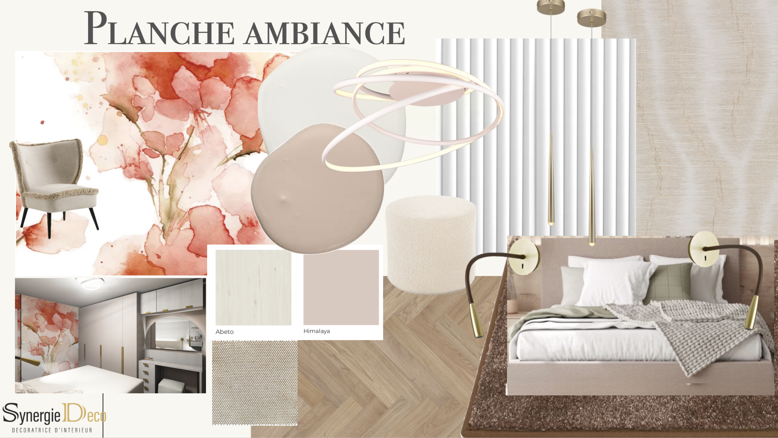 Ma mission m’a permis de proposer l’intégralité du mobilier: dressing sur mesure, lit, tête de lit et chevets , tapis, rideaux, luminaires, pouf . Un gain de temps et une facilité pour mes clients!