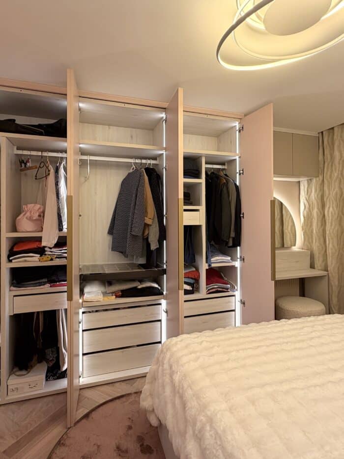 Mon équipe a pris le relais pour les travaux, que j’ai pilotés, ainsi que pour la pose du dressing et du mobilier.